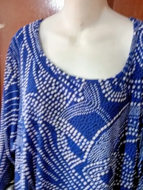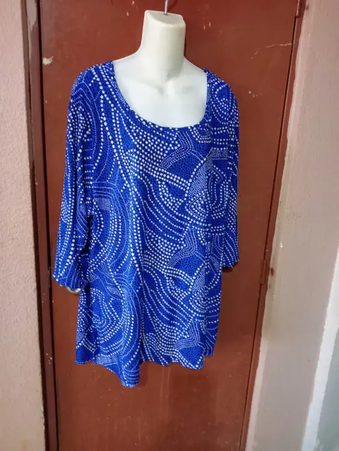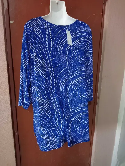 BLUSA DE POLIÉSTER Y SPANDEX TALLA PLUS 3XL CON ETIQUETA MIDE 70 CM DE AXILA A AXILA Y DE LARGO 82 CM