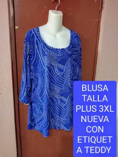 BLUSA TALLA PLUS 3XL. BLUSA DE POLIÉSTER Y SPANDEX TALLA PLUS 3XL CON ETIQUETA MIDE 70 CM DE AXILA A AXILA Y DE LARGO 82 CM