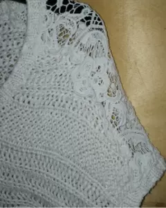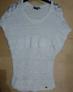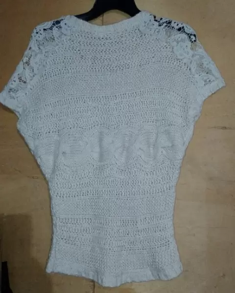 Bonita blusa en color crema tejida, es de uso sin detalles ,no rota , no jalada muy cuidada Es talla M