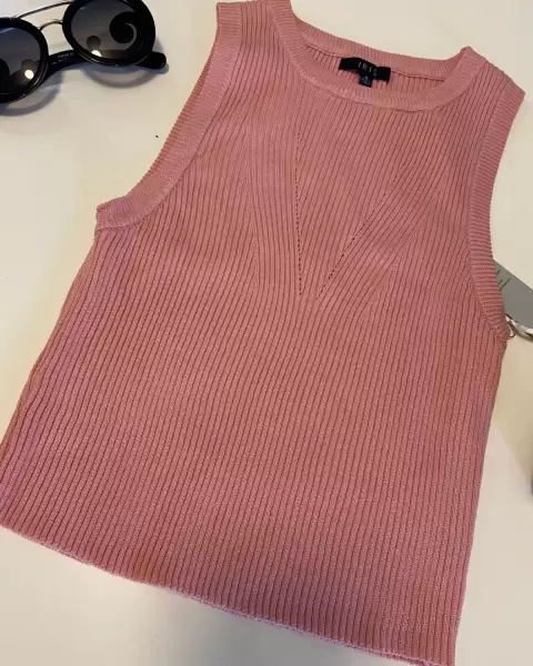 Blusa tejida. Blusa rosa, sin mangas, la tela estira bastante, así que también le queda a una talla M. Nueva