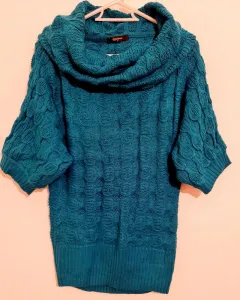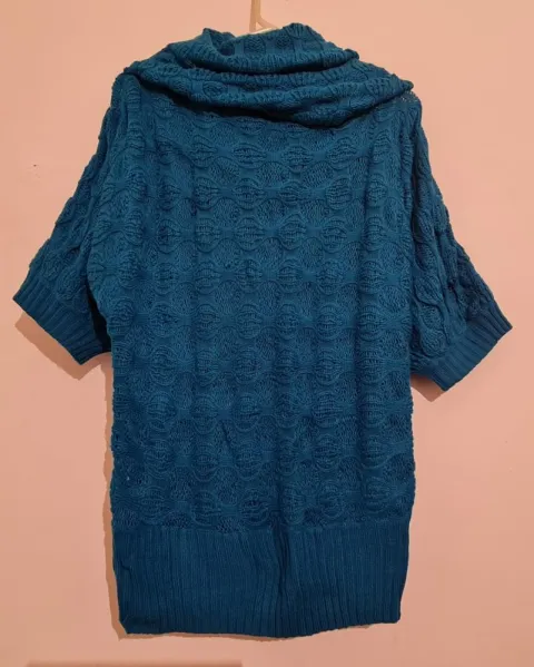 BLUSA TEJIDA MAR TURQUESA!!CALIENTITA. MUY BONITA BLUSA TEJIDO CALADO DELGADA CALIENTITA / CUELLO DE TORTUGA ACOMODA A TU GUSTO/ UNITALLA ES HOLGADA CHECA MEDIDA: 50cm sin estirar X 70cm de Largo!! Manga corta 3/4 !!INCLUYE COLLAR