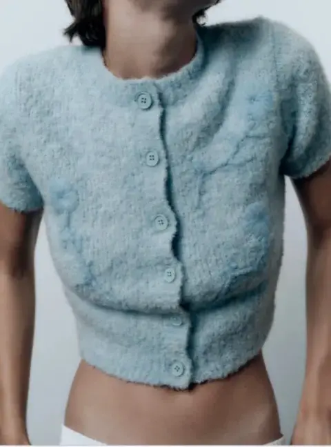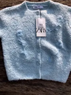 Blusa Tejida ZARA. Blusa Tejida manga corta Talla S Marca ZARAColor azul con flores bordadas Nueva con etiquetas
