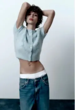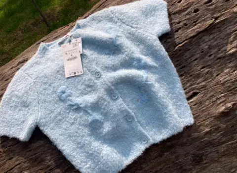 Blusa Tejida manga corta Talla S Marca ZARAColor azul con flores bordadas Nueva con etiquetas