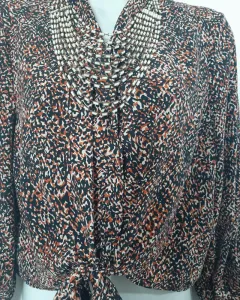 Blusa THAT'S IT corta. Blusa manga laga , cuello en V, con botones en la parte de enfrente y se amolda al cuerpo haciendo un nudo o moño a la altura de la cintura.