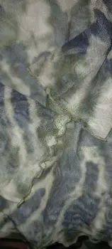 Camisa delgada con diseño Tie Dye verde y negro, manga al codo y diseño ondulado en los bordes.