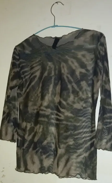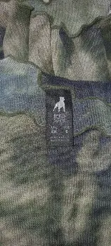 Blusa Tie Dye. Camisa delgada con diseño Tie Dye verde y negro, manga al codo y diseño ondulado en los bordes.