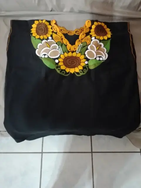 Bordado a mano, tela: manta de algodón, muy fresca. Luce muy bien con jeans.