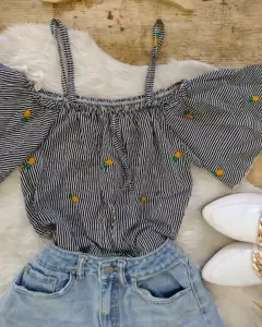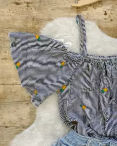 Blusa tipo campesina con tirantes. Hermosa blusa tipo campesina con tirantesTiene un estampado increible de piñasLa tela es sencilla y delgadaQueda a talla XS y SSin detallesCompletamente nueva con etiqueta