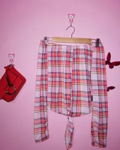 Hermosa blusa de Tela tipo franela super strech, manga larga, corte campesino, hombros descubiertos, tiene un coqueto nudo en la parte de enfrente. Predomina el color rosa