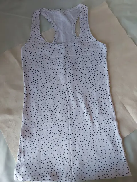 Blusa tipo deportivo. Blusa sin mangas tipo deportiva color blanca con lunares en color azul, elástica, nueva.
