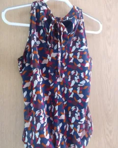 Blusa tipo halter. Blusa tipo halter talla grande, azul con estampado, con resorte en la parte de abajo, 60cm de largo