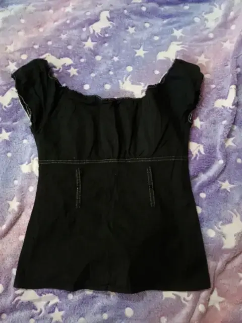 Blusa tipo mezclilla de manga tipo escote, color negro talla CH -M detalle en el elástico, sin etiqueta