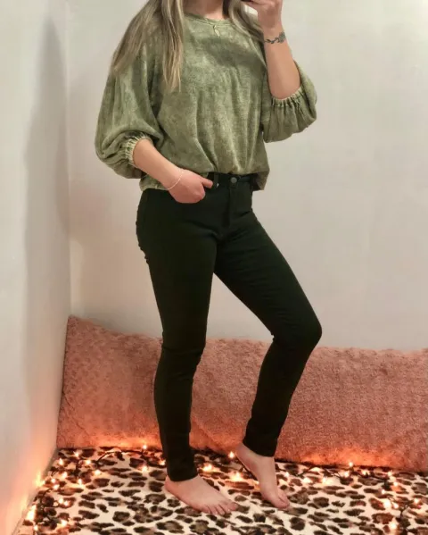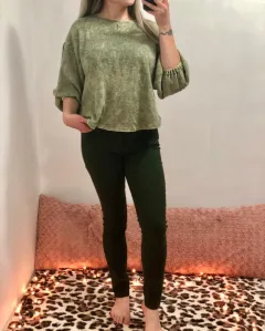 Es un suéter / blusa, con manga 3/4 el estilo es oversize, flojito y su diseño es tipo deslavado.