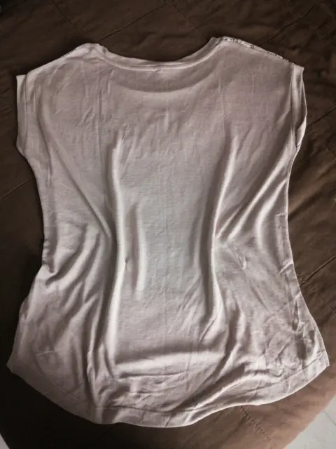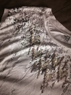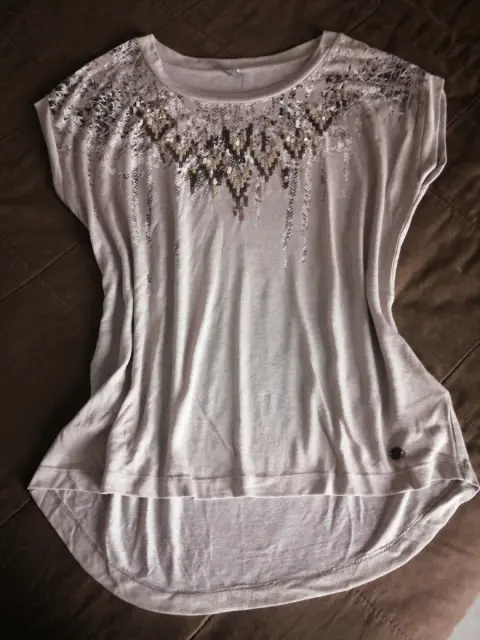 Blusa tipo playera. Bordado al frente de lentejuela Talla GColor arenaMarca LOSANSin usar