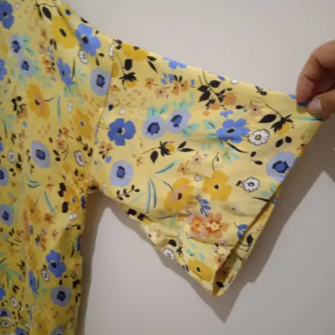 Blusa tela muy suave tipo seda con manga amplia , es suelta y un poco más larga de la parte de atrás