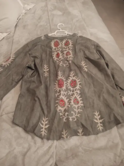 Blusa tipo Soho. Blusa manga larga, cuello V estampado tipo Soho flojita muy cómoda, color verde 2 xl