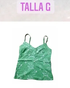 Blusa tirantes verde talla L. Tiene doble tela, de muy buena calidad, estampado en blanco, tirantes ajustables.