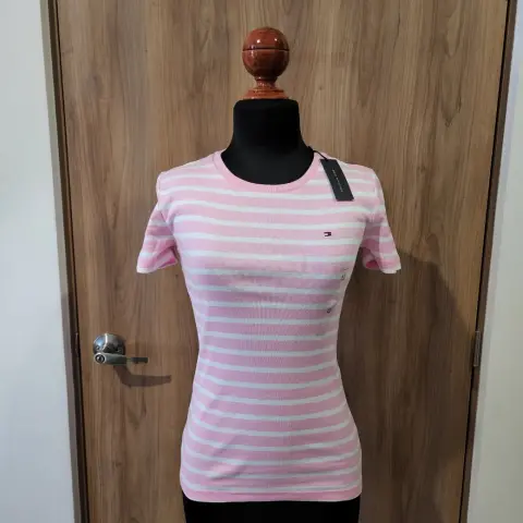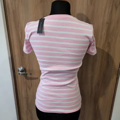 Nueva y original!!!Pregunta por disponibilidad.Blusa marca Tommy Hilfiger con rayas blancas y rosas.Talla XS.