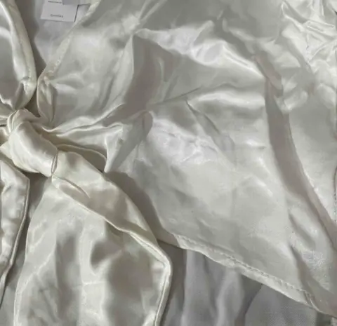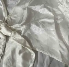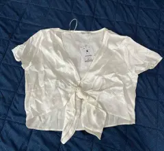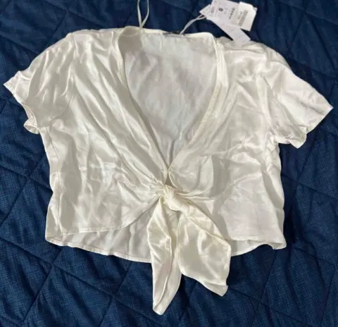 Blusa corta tipo top, con nudo, color hueso, queda un poco arriba del ombligo, está nueva y se ve padrísima puesta