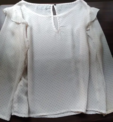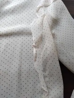Blusa ligera, transparente en tono beige con puntos negros. Ideal para lucir un top de color contrastante bajo ella