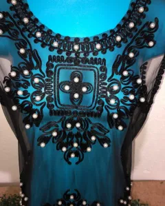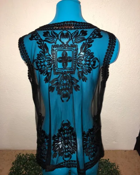 Bonita blusa trasparente, con hermosos bordados, indica talla ÚNICA pero yo soy “M” y me quedo poco amplia.