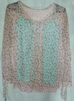 Linda blusa transparente de flores con top azul verde de abajo.Apto para XS, S, M