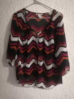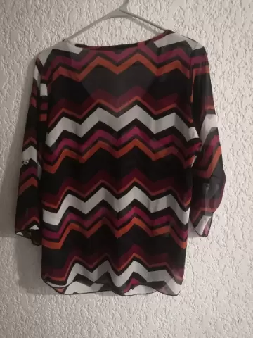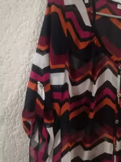 Blusa Multicolor transparente talla L. Marca Agaci, la manga se puede abotonar para hacerla tres cuartos. Estado Seminuevo