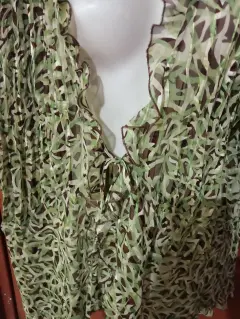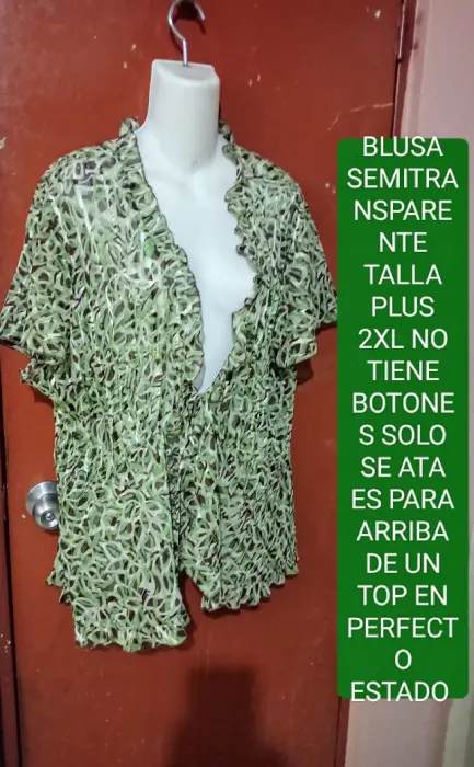 BLUSA TRANSPARENTE TALLA PLUS 2XL POCO USO MIDE 44 CM DE HOMBRO A HOMBRO Y DE AXILA A AXILA 54 CM APROXIMADAMENTE SOLO SE ATA ES COMO PARA ARRIBA DE UNA BLUSA TOP