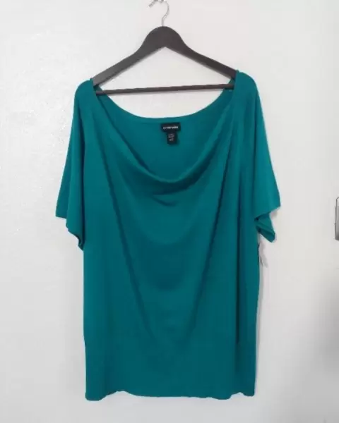 Blusa turquesa cuello ancho