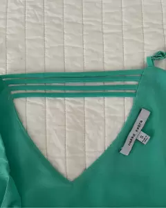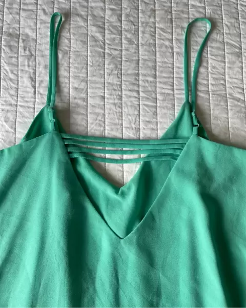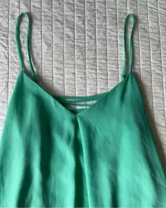 Blusa turquesa de tirantes Naked zebra. Blusa holgada con forro de tirantes y escote en la espalda con tirantes y tiras como adorno.Tirantes ajustables.Talla: S Medidas: 41 cm de axila y 57 cm de largo desde el tirante, está medida puede cambiar debido a que los tirantes son ajustables.