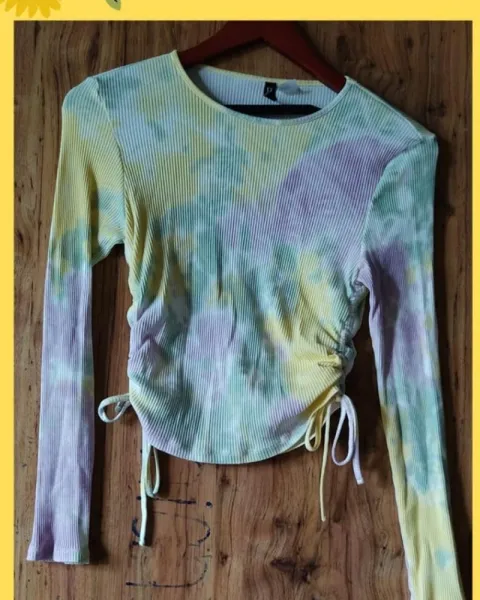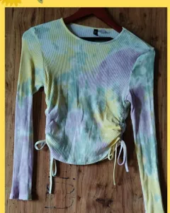 Blusa tye dye. Blusa de manga larga tye dye colores pastel a los costados sujetadores