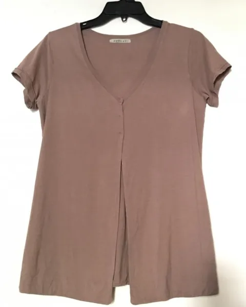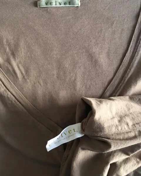 Blusa VELVET graham & spencer capuchinotela algodón y spandex, tres botones ocultos, cuello en v.48 cm axila 70cm largo