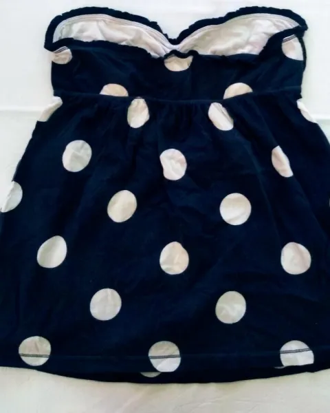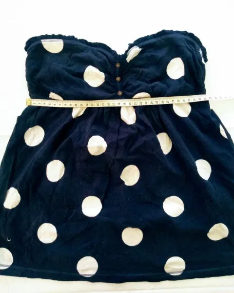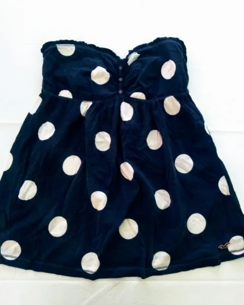 Blusa strapless azúl con bolitas blancas, super fressa. Tela 100% algodón. Marca Hollister talla L. NUEVa. Medidas: largo 50cm . Axila a axila 34 cmBlusa strapless azúl con bolitas blancas, super fressa. Tela 100% algodón. Marca Hollister talla L. NUEVa. Medidas: largo 50cm . Axila a axila 34 cm