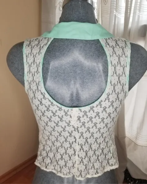 Blusa botones en la parte de enfrente, encaje por la parte de atrasTalla SBlusa importada usada por horas.