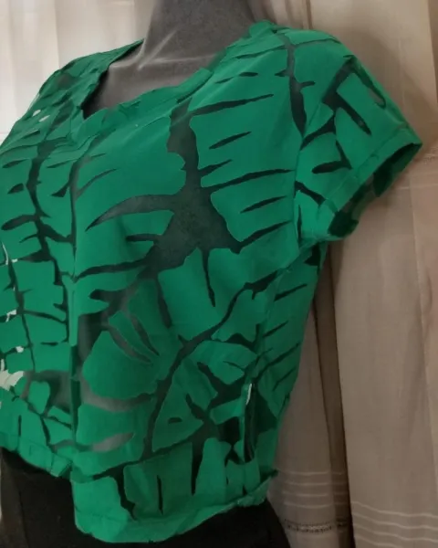 Blusa verde con transparencias. Blusa verde esmeralda con transparencias