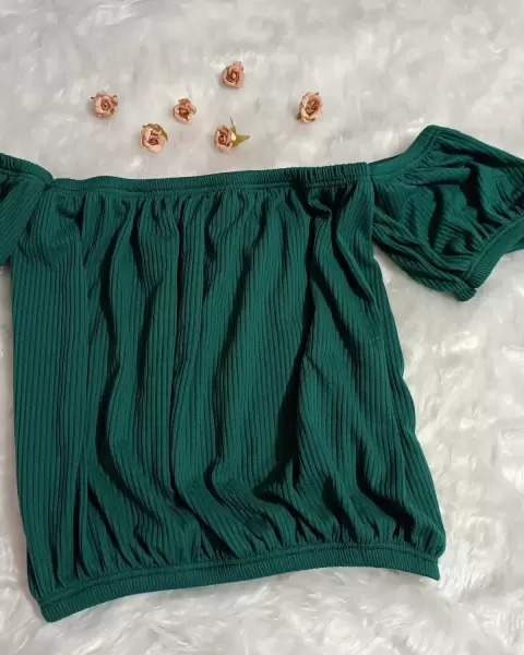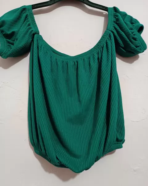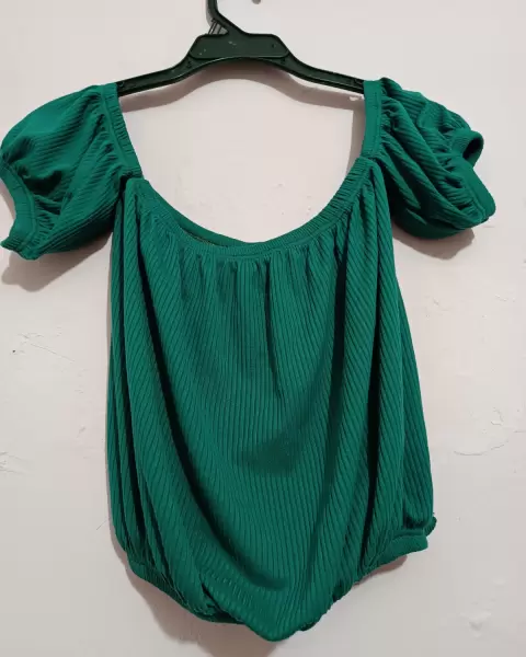 Blusa verde llamativo. Blusa descubierta de los hombros muy coqueta ,puedes usarla hasta para la playita 🥰