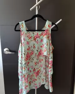 Bella blusa color menta claro, y flores rojas,Muy linda, solo una puesta,MEDIDAS AXILA AXILA 60 CMLARGO 70 CMLISTA PARA ENVIO INMEDIATO