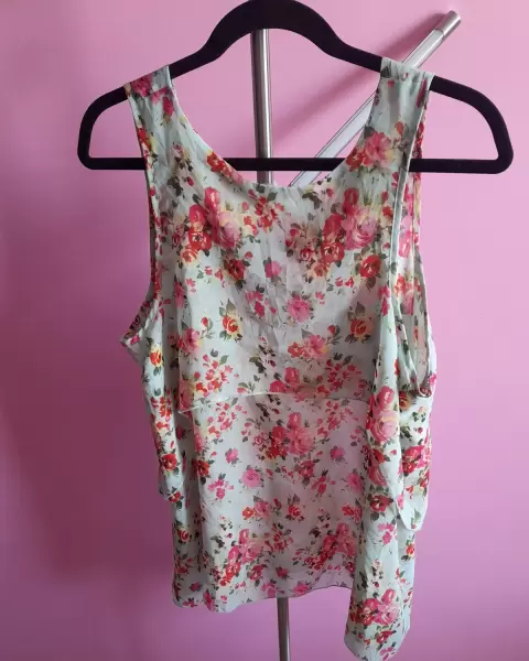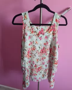 Blusa verde menta y flores rojas