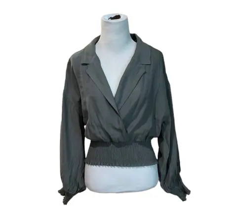 Blusa verde oliva. Blusa verde oliva, manga larga, tela fresca, cuello v, talla m pero le queda a una talla s (la talla viene reducida), plisada de la cintura.
