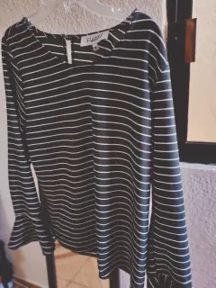 Blusa verde oscuro con rayas blancas, de cuello redondo , se amolda a la figura de talla M