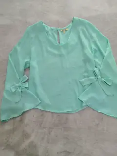 Blusa Verde Petite Studio T 10. Blusa Verde Petite Studio T 10 con manga amplia con detalle de moños