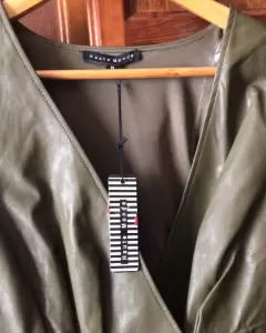 Blusa verde militar vinipiel con broches alado y escote v en perfectas condiciones nueva con etiqueta