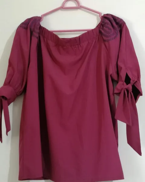 Linda blusa color vino al hombro, en perfecto estado, con detalles bordados