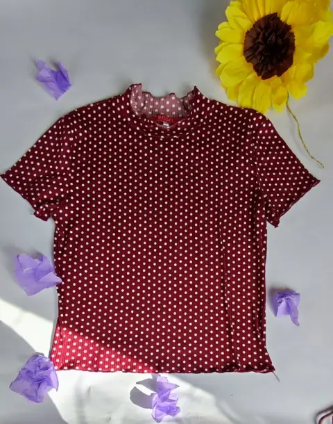 Blusa vino. Blusa color vino con círculos blancos talla L sin detalles Marca Bisset