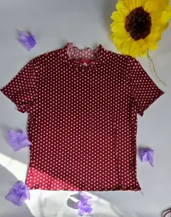 Blusa color vino con círculos blancos talla L sin detalles Marca Bisset