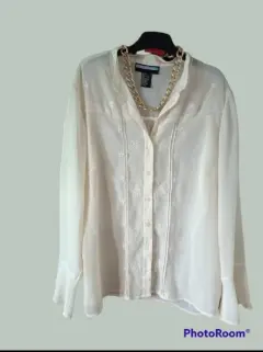 En perfectas condiciones,con detalle de bordado, limpia versatil la puedes usar formal, casual o como sobre camisa, detalle de bordado al frente y manga con puño campanaMedidas📝Aaxila a axila 58cmLargo 73cmManga 62cm