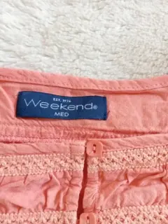 Blusa Weekend. Blusa weekend , color salmón claro.Talla M. Muy fresca, de algodón.smga corta y cuello cuadrado.