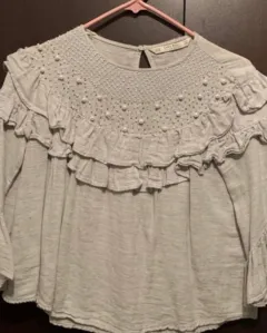 Blusa Zara. Blusa con olanes, marca Zara, talla XS pero perfectamente queda en S, viene amplia, con cuentas color perla y olanes
