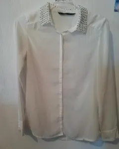 Blusa Zara en muy buen estado,solo tiene unas manchas de maquillaje pero son discretas. Le tira mas a un color beige Super bajito. Es muy fresca la puedes usar con un top por dentro ya que es tela que se transparenta