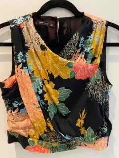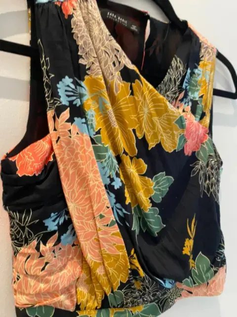 Blusa Zara floreads. Top de linda tela algodon con corte cruzado su estampado esta bellisimo Nueva